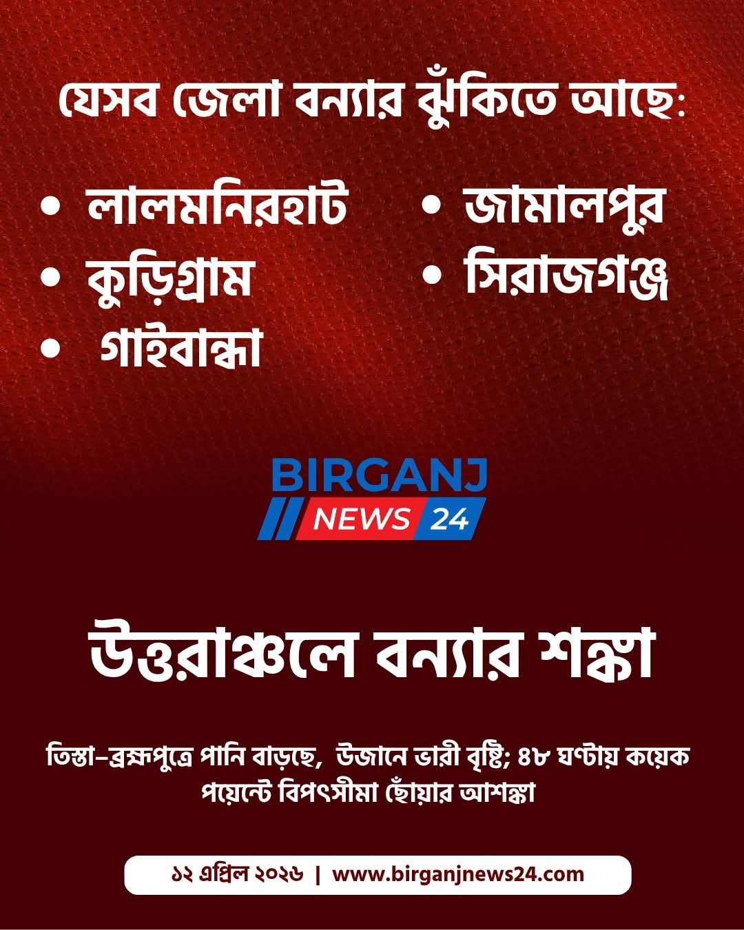 উজানে ভারী বৃষ্টি; ৪৮ ঘণ্টায় কয়েক পয়েন্টে বিপৎসীমা ছোঁয়ার আশঙ্কা বন্যার ঝুঁকিতে আছে, লালমনিরহাট,কুড়িগ্রাম গাইবান্ধা,জামালপুর সিরাজগঞ্জের নিম্নাঞ্চলও ঝুঁকিতে বীরগঞ্জ নিউজ২৪ স্পেশালঃ উজানের ভারী বৃষ্টিপাতের প্রভাবে দেশের উত্তরাঞ্চলের নদ-নদীর পানি দ্রুত...