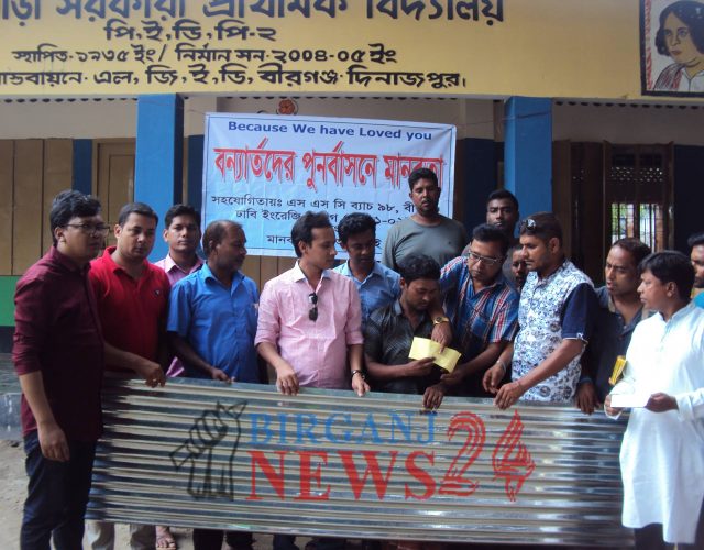 আজ শুক্রবার বেলা ১২টার দিকে ঝাড়বাড়ী সরকারি প্রাথমিক বিদ্যালয় প্রাঙ্গনে বন্যায় ক্ষতিগ্রস্থ ত্রিশটি পরিবারের মাঝে প্রত্যেককে এক-বান টিন ও আনুষাঙ্গিক কাজের জন্য নগত পাঁচশত টাকা প্রদান করে এই স্বেচ্ছাসেবামুলক সংগঠনটি । বিতরণকালীন সার্বিক সহযোগিতা করেছে ঝাড়বাড়ী অতঃপর থিয়েটার এন্ড সংঘ ।