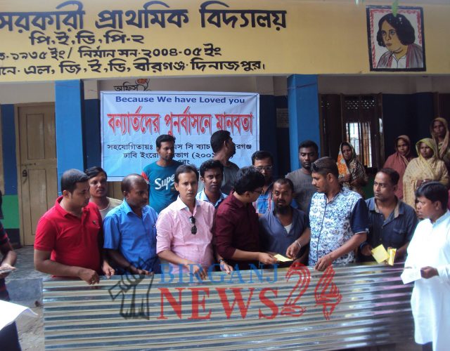 রেজাউল সরকার রনি: সম্প্রতি বন্যায় ঘর-বাড়ি ক্ষতিগ্রস্থ হয়েছে এমন মানুষদের মাঝে টিন বিতরণ করেছে বীরগঞ্জ সরকারি পাইলট উচ্চ বিদ্যালয়ের ‘৯৮’-এর এস.এস.সি ব্যাচ । সার্বিক সহযোগিতায় রয়েছে ঢাবি ইংরেজি বিভাগ (২০০১-২০০২) ।